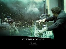 During the opening credite of this film a 'breaking news' report is being read out stating that the youngest person in the world, being of age 18, has been killed. This is a very dramatic and attention catching opening as you the veiwer then believes to question how and why is that the youngest person in the world at the age of 18, why has no one had a baby over the past 18 years? Also, an explosion takes place at the start of the film this also catches the veiwers eye and gets them wondering why was there an explosion, whats going on? Finally, the society seems very corrupt, there is a high pitched noise and the colour seems very dull. This makes the atmosphere seem as though it is very sad and damaged.